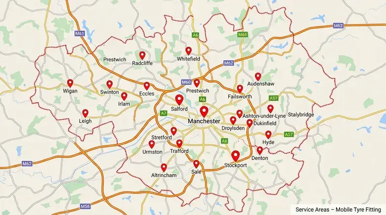 We work at driveways, car parks, office forecourts, roadsides wherever your vehicle happens to be. If you’re near postcode areas M1 to M90, or surrounding districts across the Greater Manchester boundary, give us a ring and we’ll confirm availability.